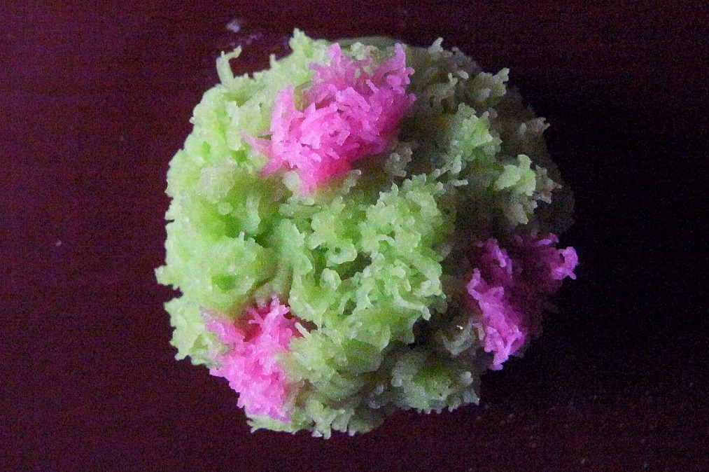 鶴屋吉信 赤、緑、黄色の色鮮やかなきんとん。