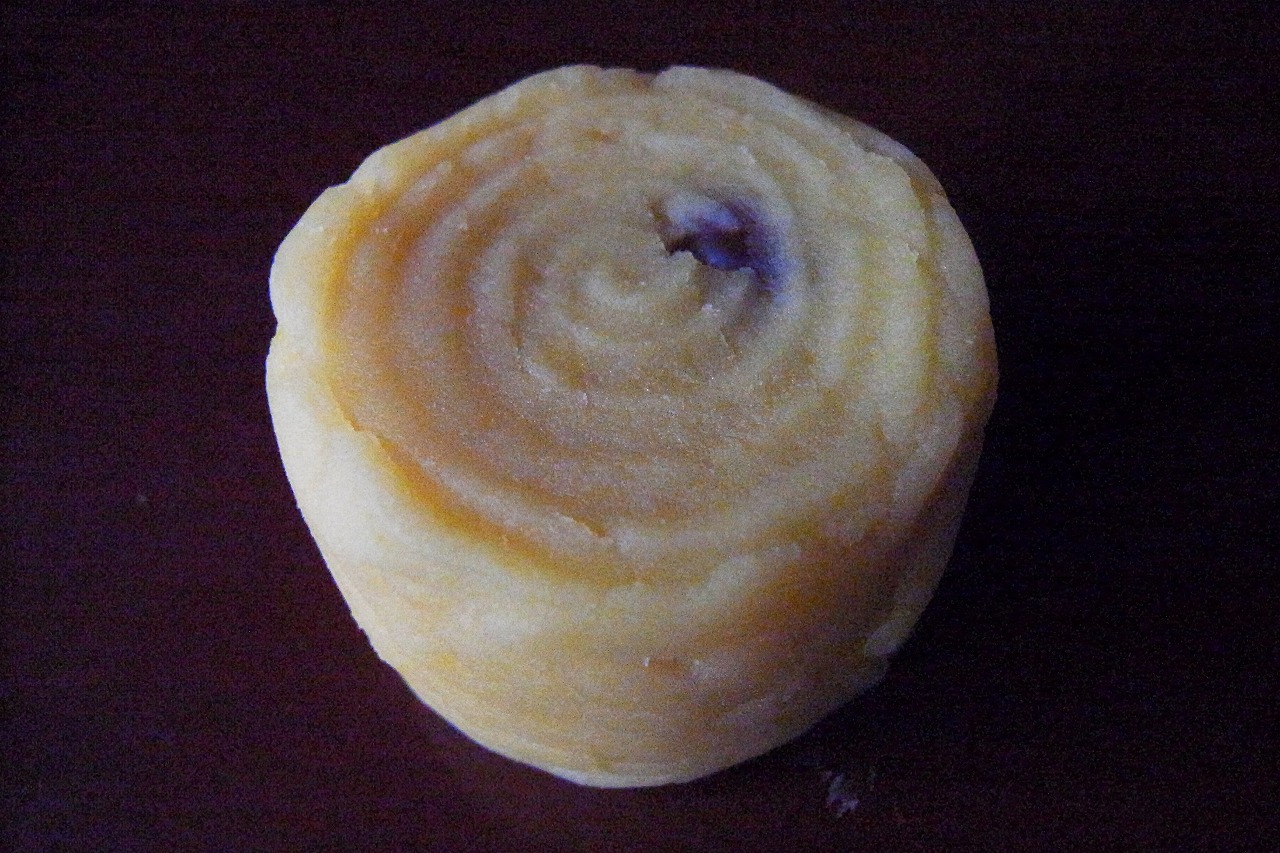↓ 見た目は地味なのだけれど、断面はキュート! 1粒の小豆と、漉し餡。
