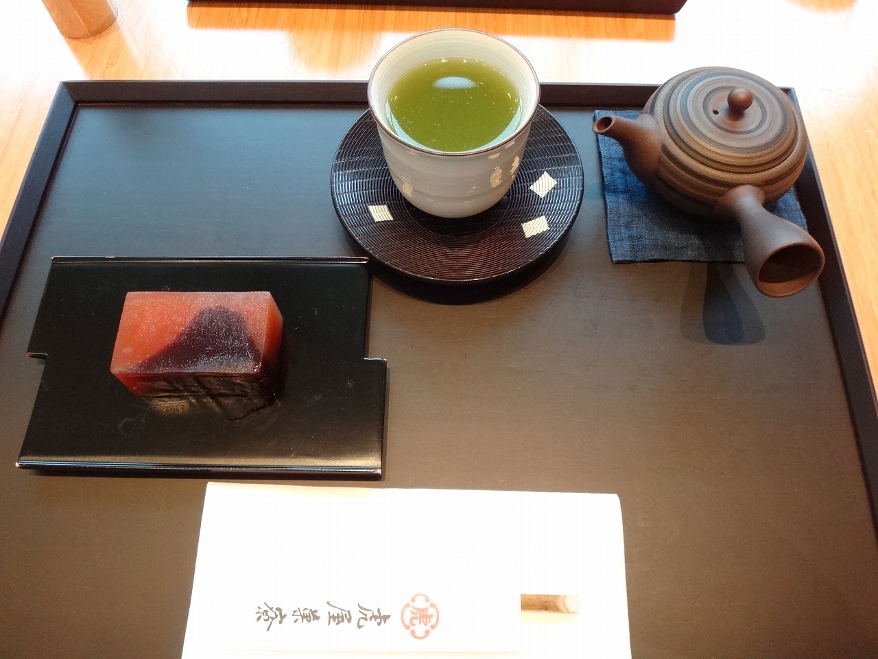 虎屋御殿場店の茶寮で羊羹をいただく。